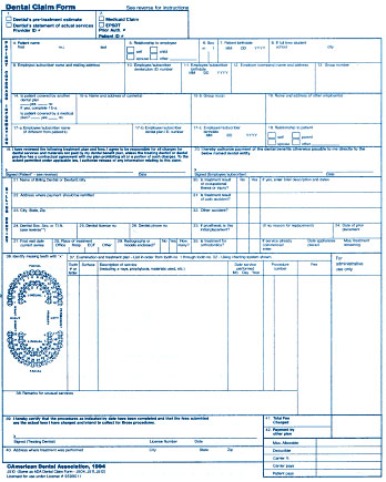 ADA Dental Claim Form - 1-Part - Laser/InkJet (single sheet) 2000 Edition