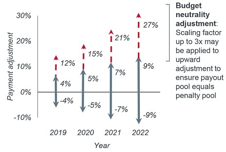 Rewards providers with a 5% annual bonus from 2019-2024 if they have a significant share of their Medicare revenue and/or patients in contracts that include two-sided payment risk (e.g. Next Generation ACO program).