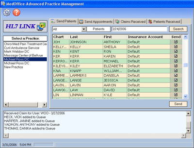 our practice management software with HL7-compliant EMR systems. Users can transfer patient and appointment records from MedOffice to EMR and transfer claims information from EMR to MedOffice. Users have the choice to view and validate the transfer in the HL7 module before committing to MedOffice or the EMR system.